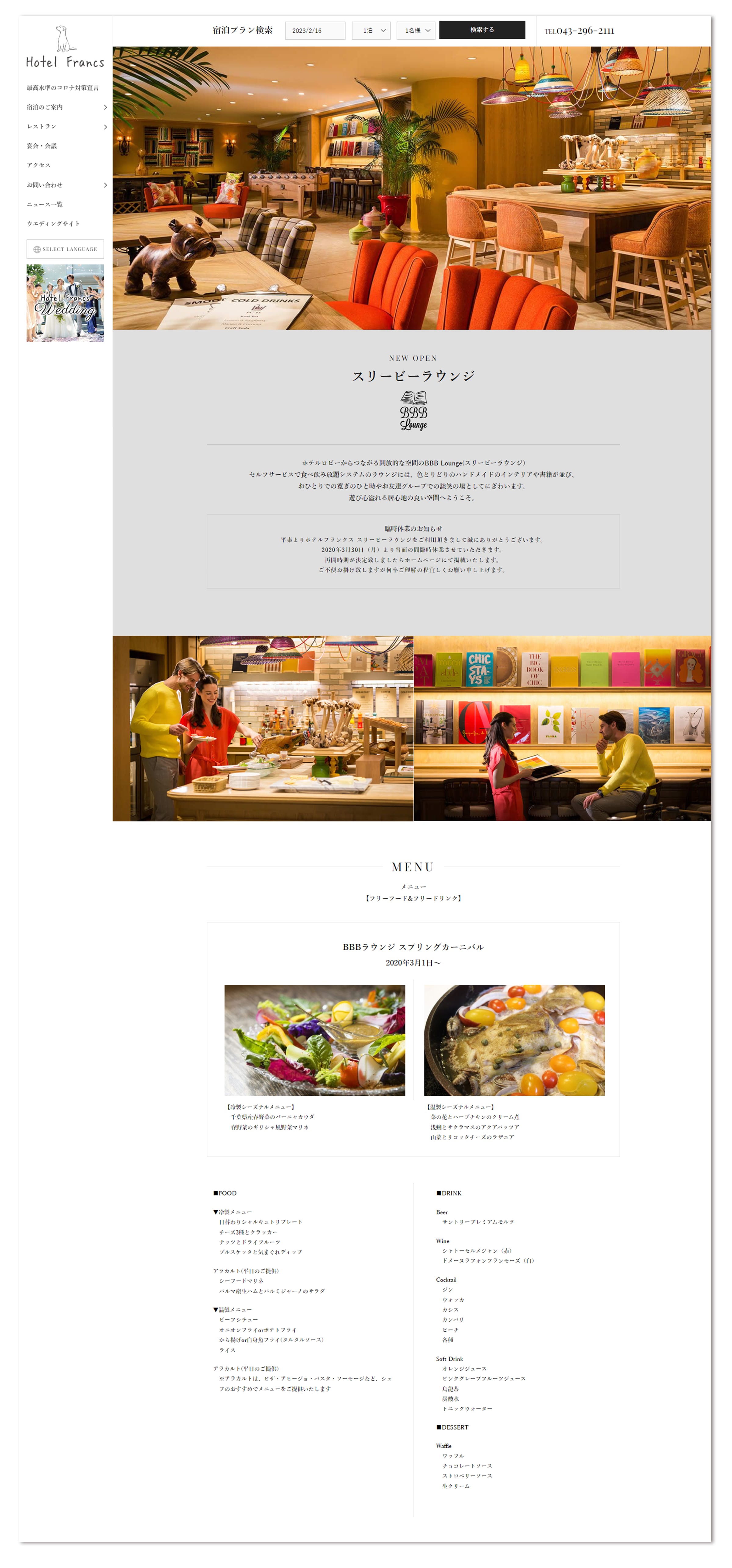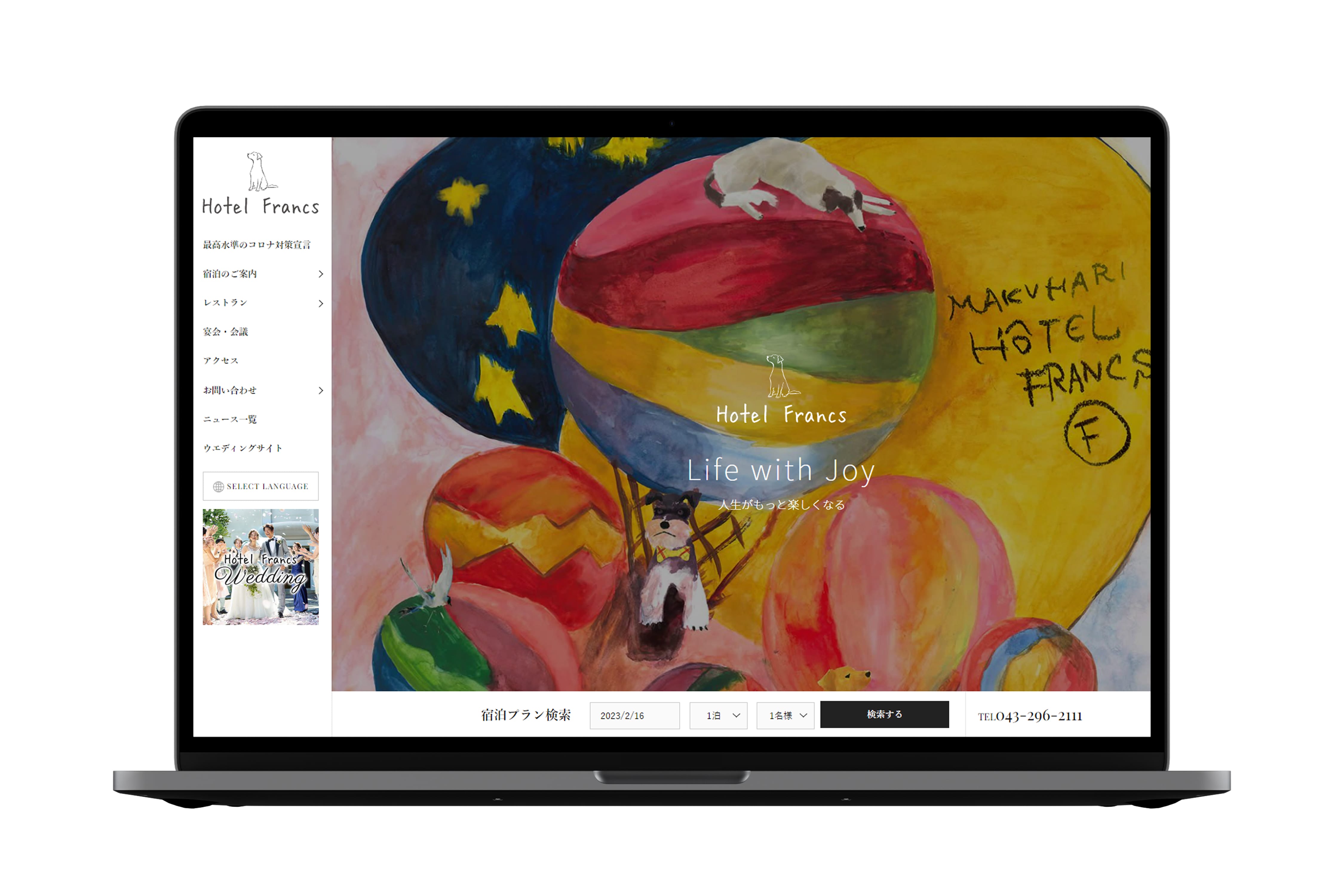 Hotel Francs 街とそこに暮らす人とともに楽しむホテル ここに来ると人生がもっと楽しくなる。 ホテルフランクスが提案するのは「Life with Joy」。 Joy with Freinds・Joy with Family・Joy with Lover・Joy with Pets そんな思いを叶える居心地のよい遊び心溢れたデザイナーズホテルです。 Hotel Francs