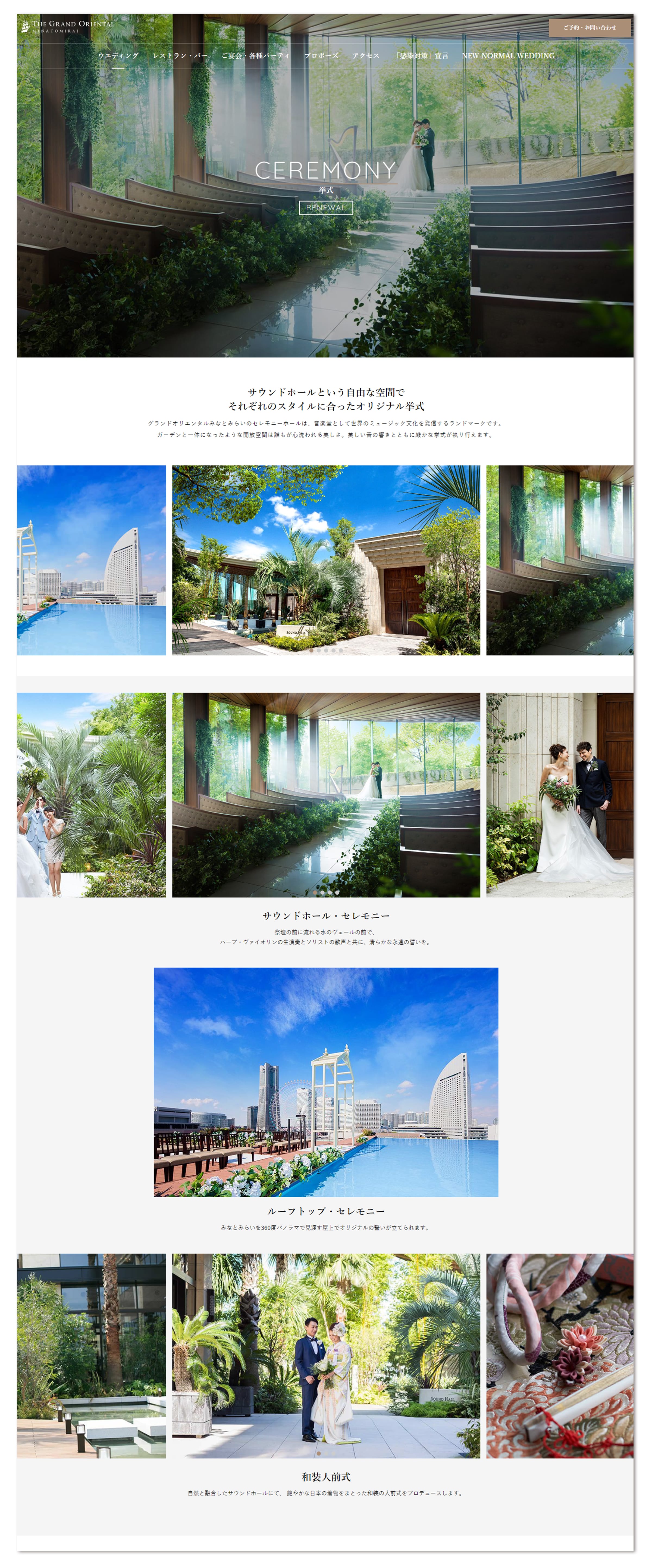 THE GRAND ORIENTAL MINATOMIRAI 横浜の開港当時の歴史と、世界の文化を取り入れた壮大な世界観の結婚式場。 そのブランディングを手掛け、ロゴ・パンフレット・WEBサイト・写真撮影など全てをトータルで作り上げました。 THE GRAND ORIENTAL MINATOMIRAI