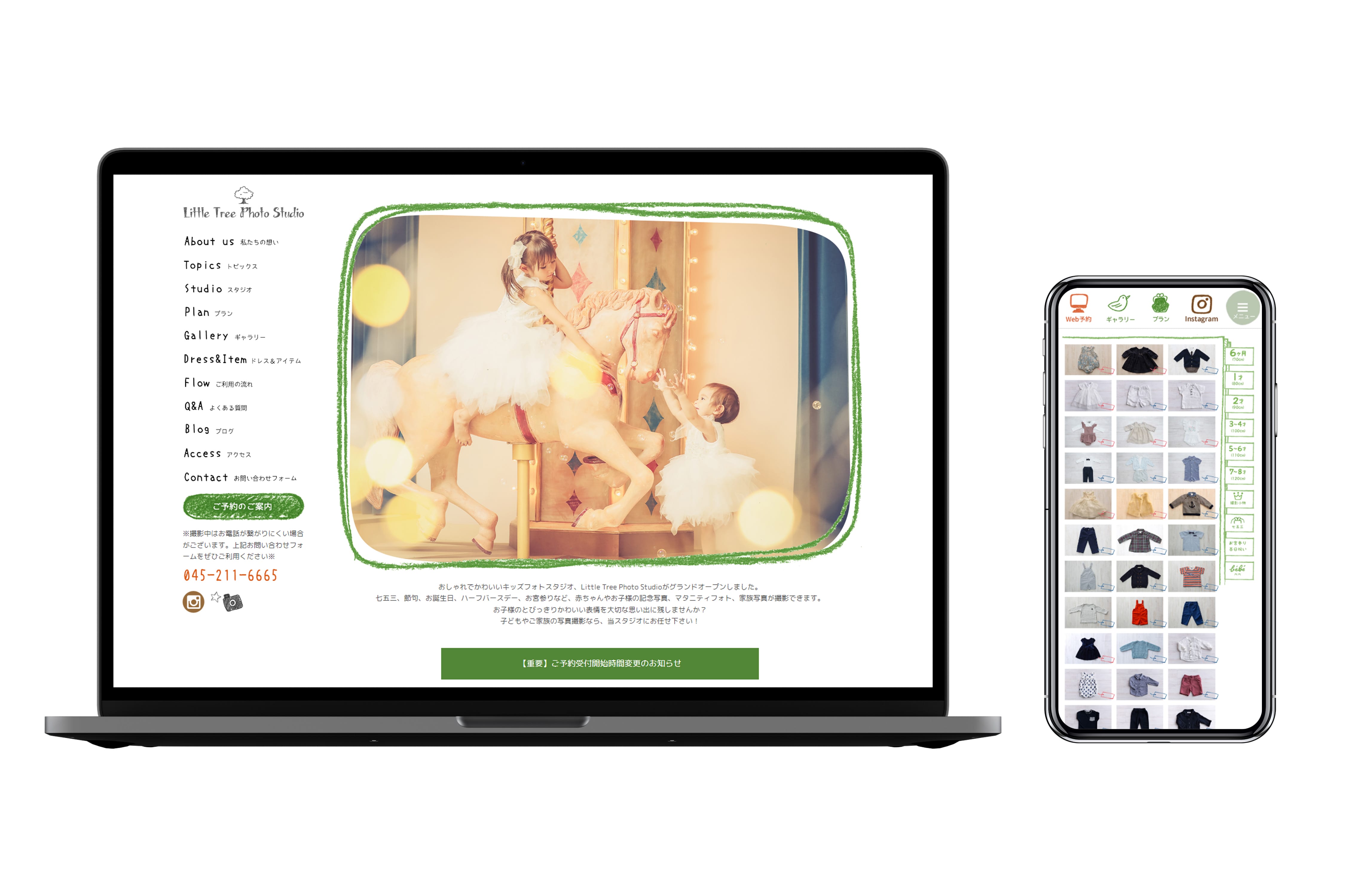 Little Tree Photo Studio リトルツリーフォトスタジオは、子どものための写真スタジオ。 しかし、そのご家族もお客さまであるため、子ども過ぎず大人にも受け入れられやすいデザインに仕上げました。 イラストレーションからWEBサイトデザイン・構築までトータルで手掛けました。 Little Tree Photo Studio